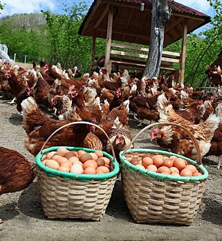 Bugün yeryüzünün çoğu bölgelerinde et ve yumurtası için büyük çiftliklerde tavuk yetiştirilir. İyi bir tavuk yılda 250-300 yumurta verir. Aralık ve ocak aylarında tüy değiştirdiklerinden yumurtlamazlar. Horoz tarafından döllenmiş yumurtalardan civciv çıkar. Döllenmemiş yumurtalardan civciv çıkmaz. Yumurta besleyici bir gıdadır. Yumurtalıkta meydana gelen yumurta sarısı, yumurtalık kanalından geçerken üst kısımdan salgılanan yumurta akına bulanır. Aşağı inerken de üstü kireçlenir. Bu yumuşak kabuk havayla temas edince sertleşir. En önemli tavuk cinsleri Minorka, Leghorn, Arden, Dorking, Beç, Nemse, Fizan ve Denizlidir.